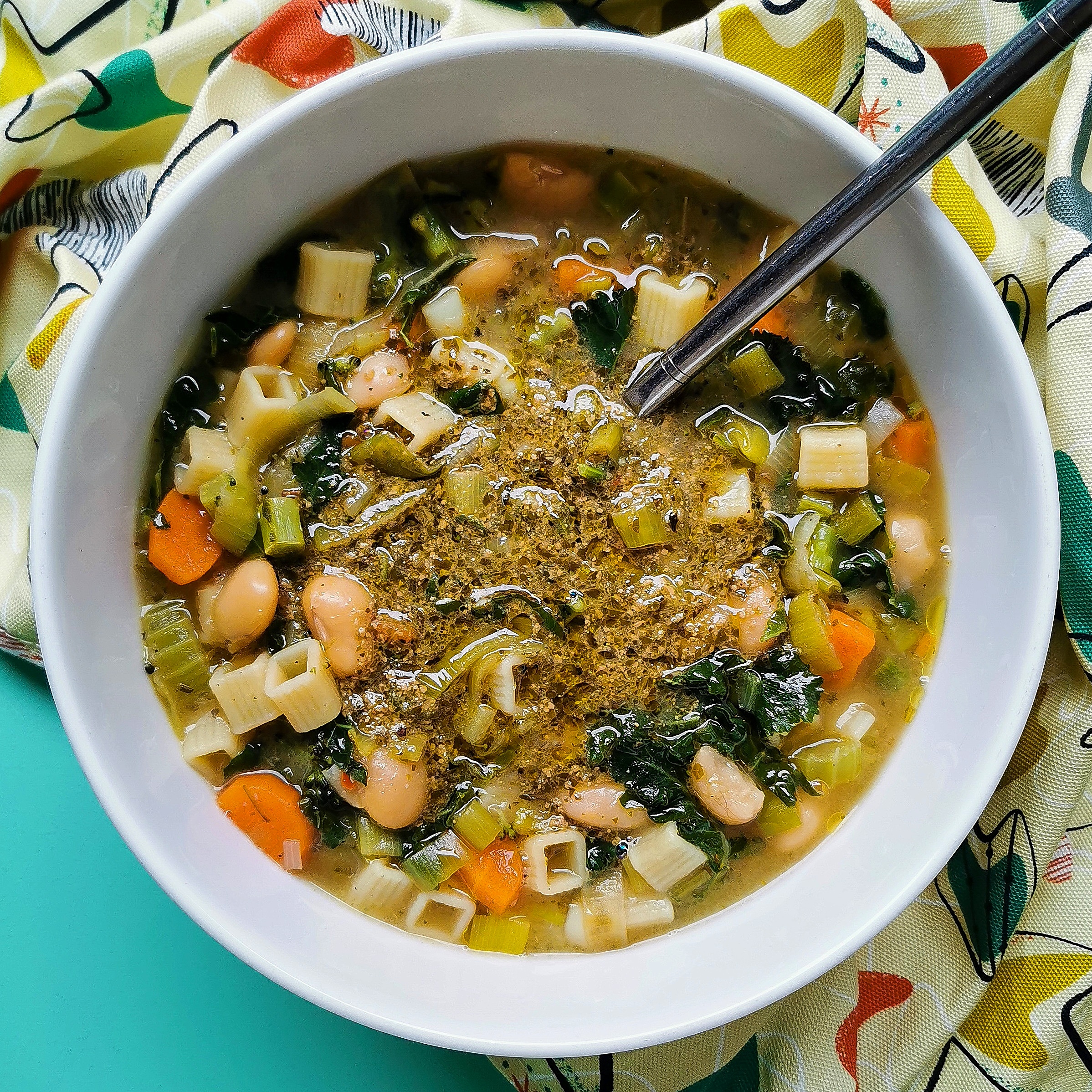 - Finely chop the cavelo nero. Add the cavelo nero to the soup then stir to combine